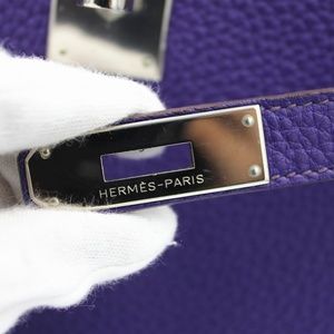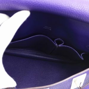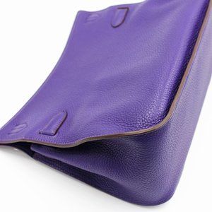 Authentic guarantee or your money back. This stylish messenger bag is beautifully crafted of purple clemence leather. Features an adjustable leather body strap, a full frontal flap and polished silver hardware. The frontal clasp opens to a matching leather interior with zipper and patch pockets. Excellent for everyday essentials with the classic sophistication of Hermes!