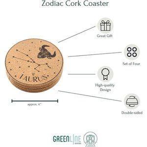 Set Of 4 Cork Coasters: To bring you something truly special, we chose to print on high quality cork. Each set of 4 coasters contains a Taurus constellation and horoscope sign.