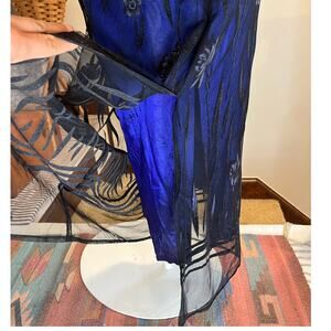 Y2K long Black and blue lace overlay floral details have some glitter and velvet effects.