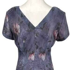 Taurus II Womens Dress Size 8 Petite Midi Vintage 80s Blue Purple Mauve Floral