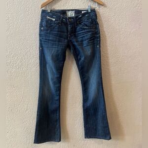 Taverniti So Russell 18” Jeans Size 27 Zippered Back Pockets Dark Wash Embroidrd