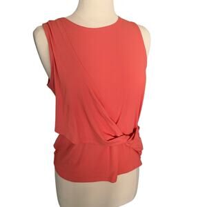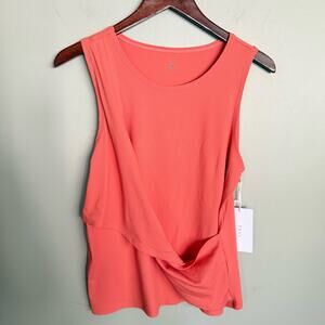 Description: Tavi Noir Synergy twist-front ribbed tank in poppy, a coral pink hue. Features a flattering draped front twist, sleeveless design, and lightweight ribbed texture. Breathable and quick-drying fabric makes it easy to wear for workouts, yoga, or laid-back days out.