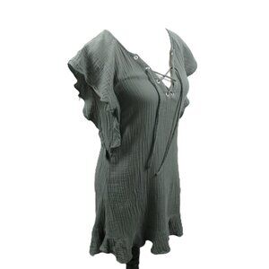 Tavik Army Green Tie Front Butterfly Sleeve Tunic Size Small