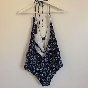 Tavik Emme Halter One-Piece Swimsuit. Floral Print. Deep V Neck. Halter. Back Self Tie. Moderate Coverage. Lined.