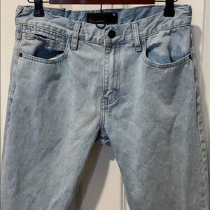 Measures approximately 15” across the waist flat, 10” rise, 28” inseam, 6 3/4” flat leg opening