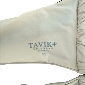 Elegant Tavik swimwear in cream and black. Ideal for beach days.