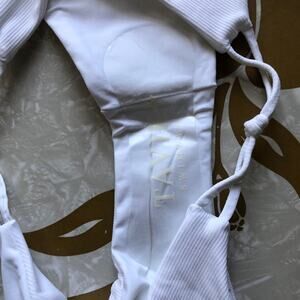 Tavik Revolve White Asher Ribbed Side Knot Moderate Coverage Swim Bikini Bottom