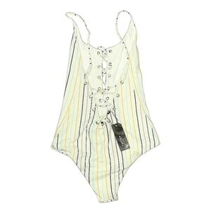 Tavik+ Striped Lace-Up One Piece Swimsuit Yellow Ivory Size S