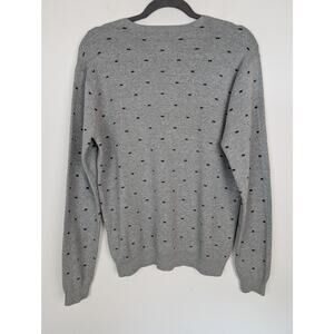 Features and description: sweatshirt/sweater; knit; embroidered; crew neck; long sleeves; gray