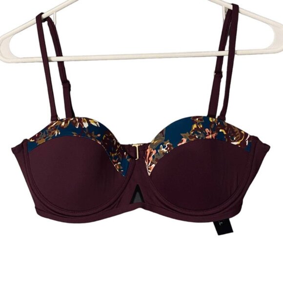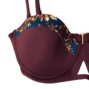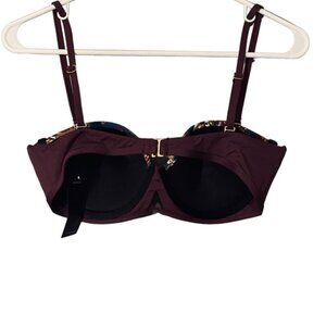 Tavik Swimwear Maroon Floral Trim Padded Beachy Bikini Top Women SZ L