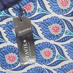 NWT Tavik Victoria one piece Monaco White Sand swimsuit. Features a reversible design and is navy blue on the opposite side. Backless with a zipper on the bust. Made in the USA. Size medium. Very cute and well made. Perfect for the beach, pool, or resort wear on your next vacation.