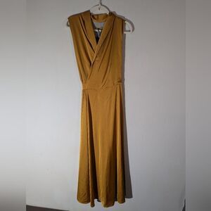 Tavrovska Mustard Yellow Gold Satin Genuine Wrap Maxi Dress Gown NWT