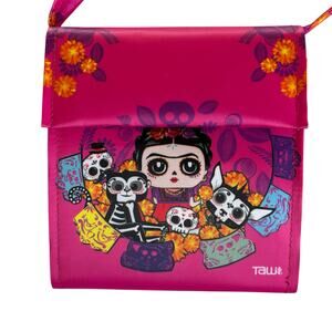 Tawi Frida Kahlo Sugar Skull Mexican Design Front Flap Hot Pink Purse