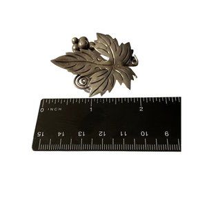 Taxco 925 Sterling Silver Grape Leaf Brooch Pin Vintage Swirl 3D Textured Mexico