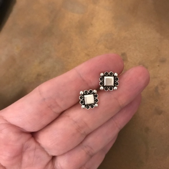 Taxco Artisan Blackened Sterling Silver Square Earrings 925 NEW on package