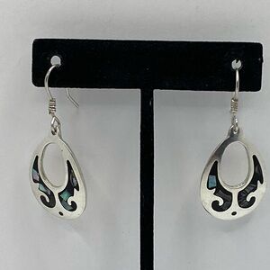Taxco Earrings 925 TA -109 Mexico Vintage Abalone inlay 9.54g