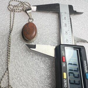 Taxco MX Brecciated Jasper Signed 925 Silver Pendant on 18" 925 Popcorn chain