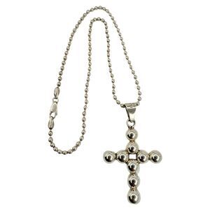 Taxco Mexico Cross Pendant Necklace 16" 925 Sterling Silver Christian Ball