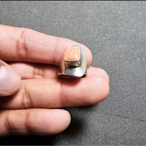 Taxco Mexico Sterling Silver 925 Pink Coral Statement Ring Size 5 Adjustable