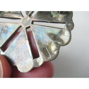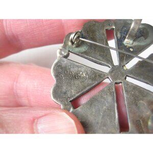 Taxco Mexico Vintage Sterling Silver Abalone Shell Inlay Brooch Pin Brooche RU