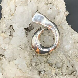 Taxco Modernist Swirl Brooch Pin Mexico Sterling Silver Vtg J372