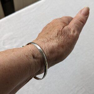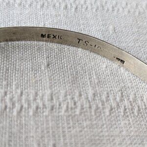 This vintage Taxco bangle has more presence than one might expect from 10 grams of sterling, owing to its clever design.