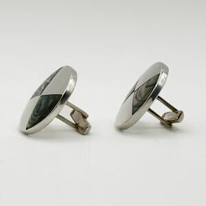 Taxco Sterling Silver Abalone Cufflinks Inlayed Mother of Pearl Round Vintage Gift for Him