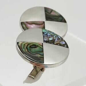 Taxco Sterling Silver Abalone Cufflinks Inlayed Mother of Pearl Round Vintage