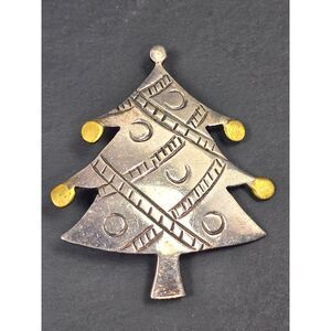 Taxco Sterling Silver Gold Brooch Pin Christmas Tree Mixed-Metal Artisan
