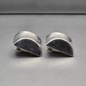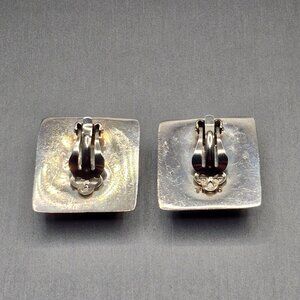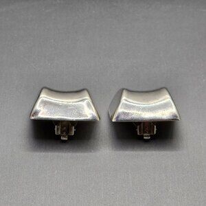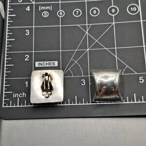 Taxco Sterling Silver Square Hollow Clip-On Earrings 1.125" TH-56 Mexico 19.31g