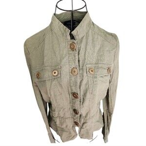 Taxi 100% Linen Military Utility Button Jacket Size Medium
