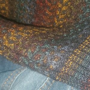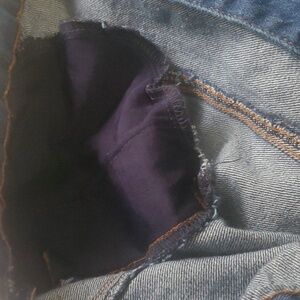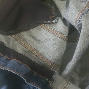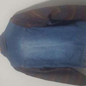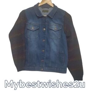 Taxi Jacket blue Denim black sleeves with colorul knit Fabric Sleeves can be a little fuzzy in places still in great condition though Womens Size x-large ? NO SIZE TAG guessing XL ?