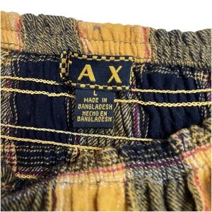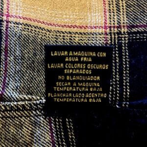 Taxi Women's Plaid Off Shoulder Baby Doll Short Dress Brown Gold, Bell Sleeve, Smocked Top Large, 100% Cotton