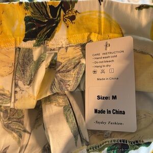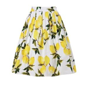 Taydey Fashion Sz M elastic waist pleated lemons print full skirt new