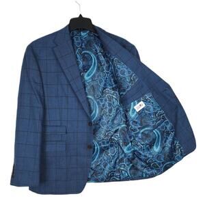 Tayion Men's Classic-Fit Stretch Wool Suit Jacket Navy/Brown Windowpane 42L NWT