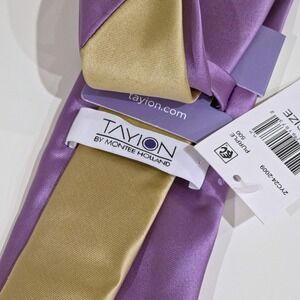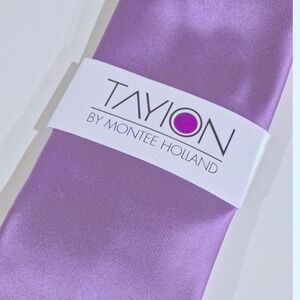 Brand new Tayion by Montee Holland necktie, a refined and stylish accessory to elevate any formal ensemble. This handsome tie showcases a rich purple hue that exudes sophistication and charm. It's meticulously crafted with attention to detail, ensuring a smooth texture and a perfect drape. Its design incorporates a tasteful balance of classic aesthetics and contemporary flair, making it a versatile addition to any gentleman's wardrobe. A hallmark of quality and design, this tie is sure to impress.