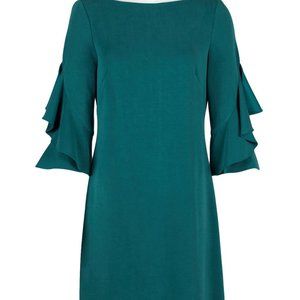 Sassy 3/4 ruffled sleeves give this dress an extra smart flare.