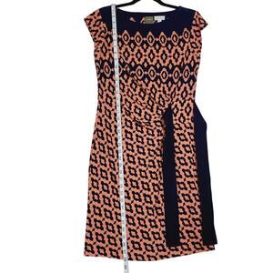 Style your baby bump with this A Pea in the Pod maternity midi dress! The navy and coral geometric pattern gives off a beautiful Moroccan vibe. It's a comfortable pull-over style with cap sleeves and double pleats at the shoulders.