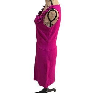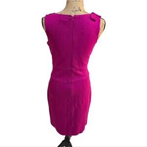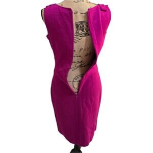 Keywords: sheath dress, pink dress, ruffle neckline, sleeveless dress, cocktail dress, party dress, career dress, women's dress, formal dress, fitted dress, magenta dress, fuchsia dress, dressy, stylish, classic