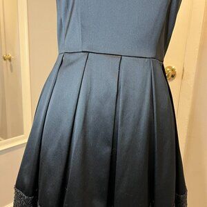 Taylor Black Fit and Flare Cocktail Dress with Sequined Bottom, Size 2
