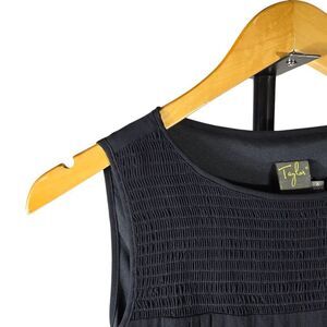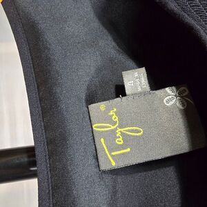 This sleek black sheath dress by Taylor features a sleeveless design and a classic crew neck, making it ideal for work or cocktail events. Its midi length and minimalist style offer a sophisticated and versatile look, perfect for any professional setting.