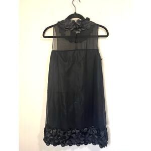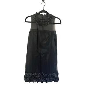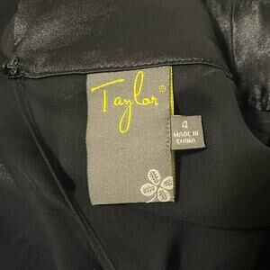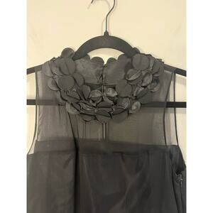 Taylor Black Silk Sheath Cocktail Party Dress w/Satin Petals Sheer Overlay sz. 4