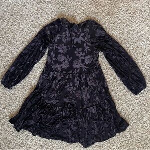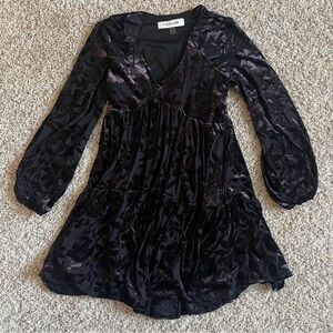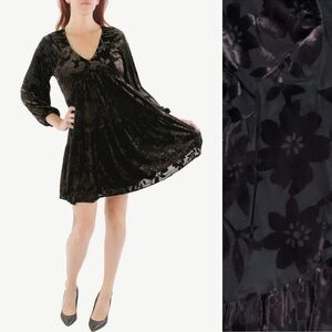 Taylor Black Velvet Burnout Minidress Size 2 V Neck Long Sleeve whimsigoth