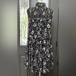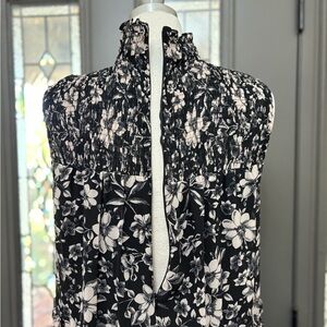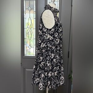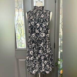 Taylor Black and Gray Floral Sleeveless Smocked A-Line Chiffon Dress | Size 14