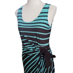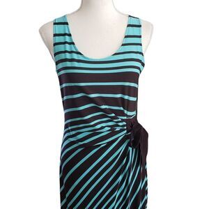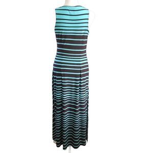 Taylor Black/Green Teal Striped Side Slits Maxi Dress Sz 6