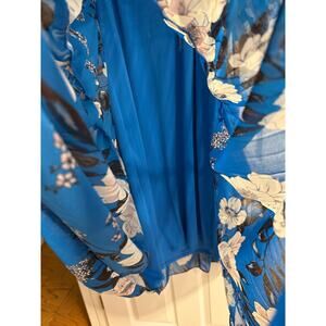 Gorgeous Blue color with white florals maxi dress. Chiffon material, has lining, see pics some places have light stray strings