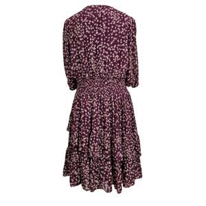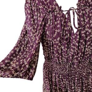 Taylor Boho Purple Floral Ruffled Fit & Flare Dress Size 14 W V-neck Puff Sleeve