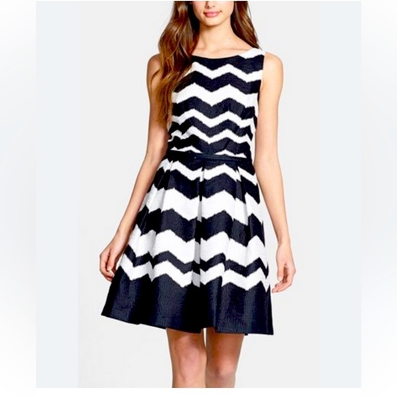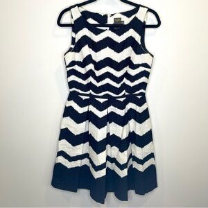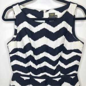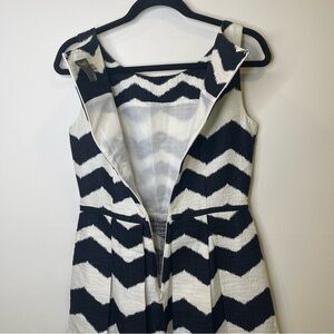 Taylor Chevron Zig Zag Jacquard Black White Fit Flare Dress Size 4