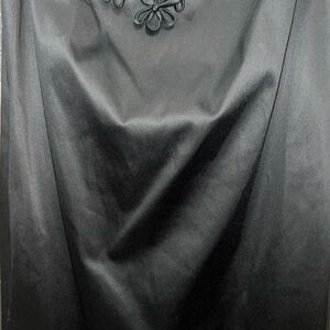 Taylor Cocktail Dress 4 Mini Black Satin Silky Faux Leather Embellished Floral