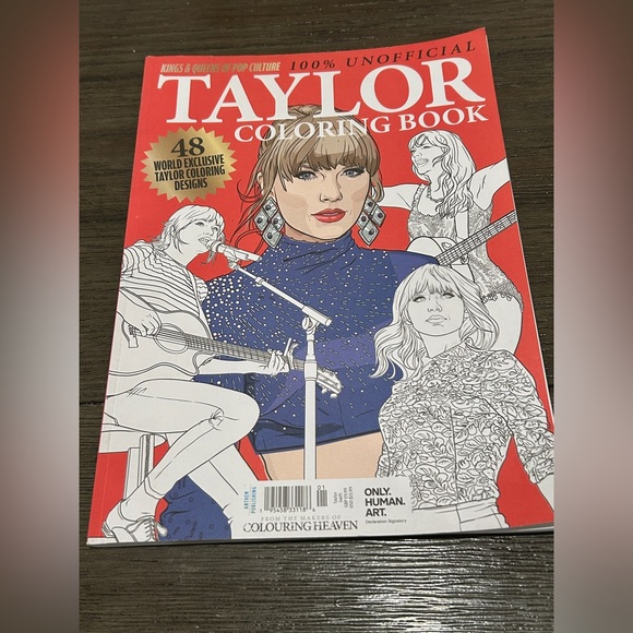 Taylor-themed coloring book with exclusive designs. Features vibrant red cover.